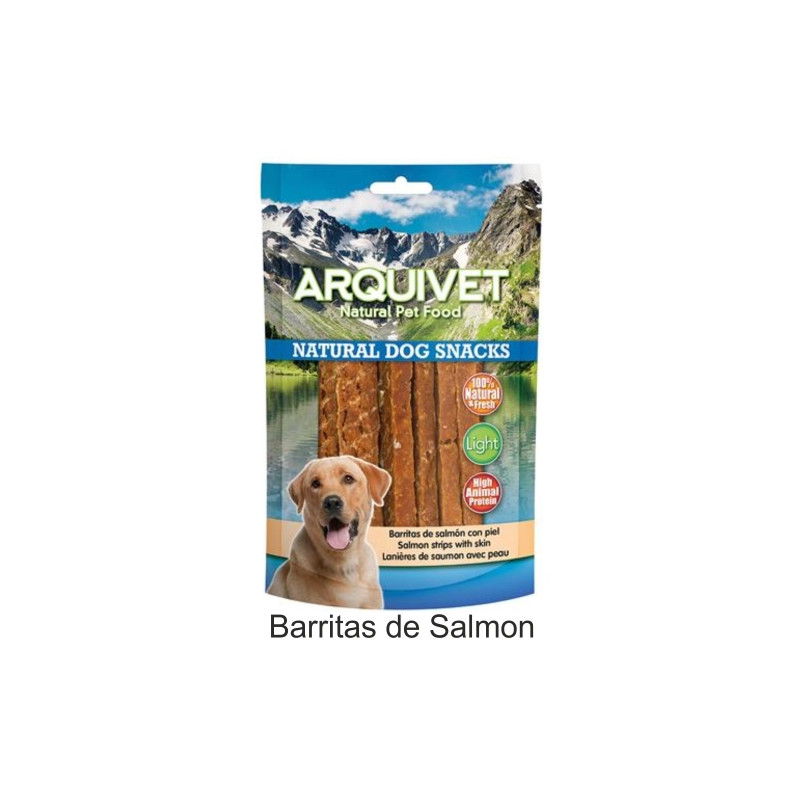Snack Arquivet Barritas de Salmón 1kg Snack Barritas de salmón deliciosos, ideal para perros de todas las razas y tamaños. Sabroso snack totalmente natural, con un alto nivel de proteína. Snack light, es perfecto para aquellos perros que siguen una dieta reducida en grasas, o simplemente para mantener un peso ideal y equilibrado en nuestras mascotas. El formato de 1kg proporciona muchas barritas en cantidad, perfectas para satisfacer a tu mascota durante un largo periodo de tiempo. Contiene un cierre hermético para un mejor mantenimiento del alimento. Arquivet ofrece una gran variedad de snacks naturales y sabrosos para recompensar a tu mejor amigo peludo. ¿Quieres tener una gran reserva de snacks para tu mascota? Los sacos de 1kg de snack de arquivet te ofrece la posibilidad de ofrecerle a tu mascota todos los días snacks naturales y sabrosos cada vez que precise ser recompensado por su buen comportamiento. Sus Características Ingrediente principal salmón Bolsa grande para un largo periodo. Bajo en grasas. 100% Natural Snack light Alta proteína animal. El formato disponible de la bolsa es de 1kg. Modo de uso Suministrar como un premio en cualquier momento, como parte de una dieta equilibrada. Los perros deben estar bajo supervisión mientras comen. Mantener en lugar fresco y seco y cerrado con el cierre hermético que trae la bolsa. Suministrar siempre agua en abundancia. Arquivet natural dog snacks barritas de Salmón sabrosos e irresistibles, perfectos para tu mascota. Ingredientes Ingredientes Principales Salmón 82 %, piel de pescado 10 %, almidón de patata 3.7 %, glicerina 2 %, sorbitol 2 %, sal 0,2% y sorbato de potasio. Analítica Proteínas 35 % Grasas 5.5 % Fibras 1.2 % Cenizas 5 % Humedad 18 %